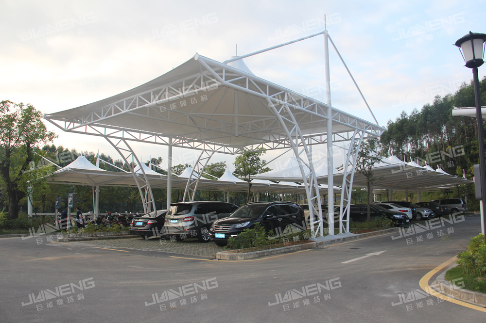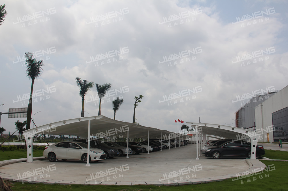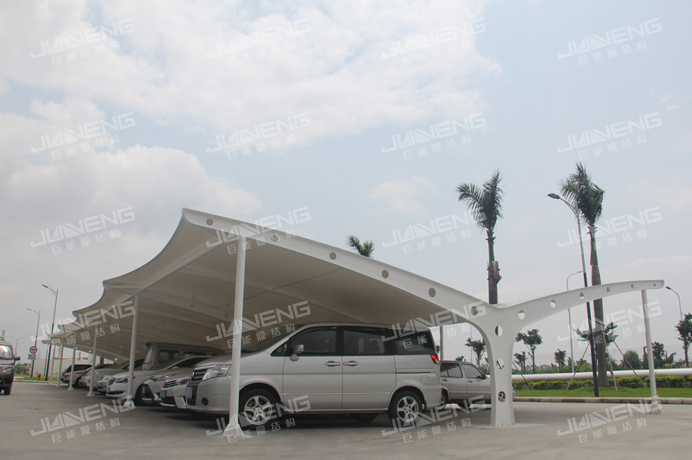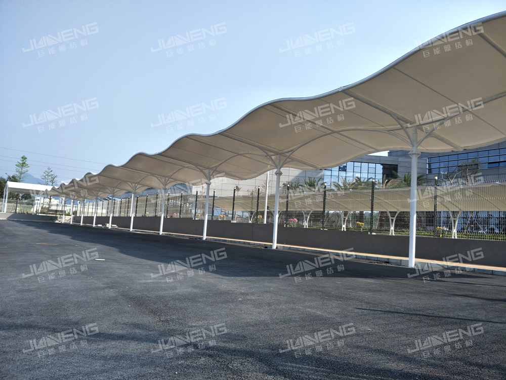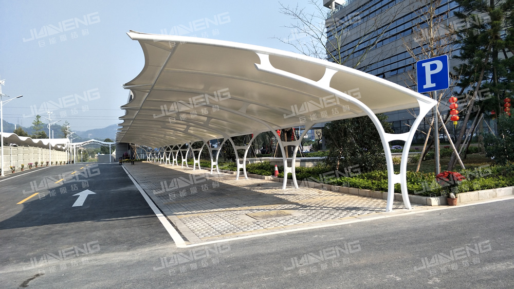 2. 藝術(shù)性:除了一般車棚不可比擬的實(shí)用、耐用、遮風(fēng)擋雨的功能外,膜結(jié)構(gòu)車棚更是一座雕塑,一件藝術(shù)品,給人美的視覺(jué)享受。其柔美,其曲線,其剛?cè)岵?jì),其豐富造型,其潔白無(wú)瑕,讓人眼前一亮,回味悠長(zhǎng)。