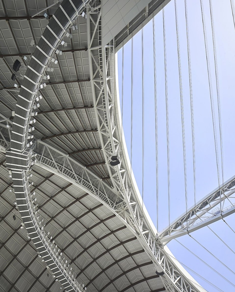 ▼可調(diào)節(jié)的屋頂采用了褶皺式PTFE纖維包層和纜索