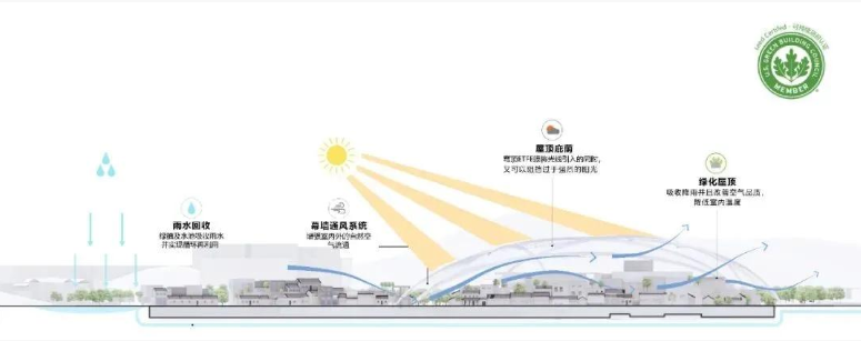 同時,穹頂也具有可持續(xù)發(fā)展設計意圖,以及節(jié)能的功能。項目整體結合珠海當?shù)氐臍夂蚝蜕鷳B(tài)環(huán)境,遵循“開源節(jié)流”的原則,充分利用可再生能源,實現(xiàn)可再生能源的規(guī)模化、特色化發(fā)展;采用高效的系統(tǒng)和設備的市政基礎設施的比例達到80%。