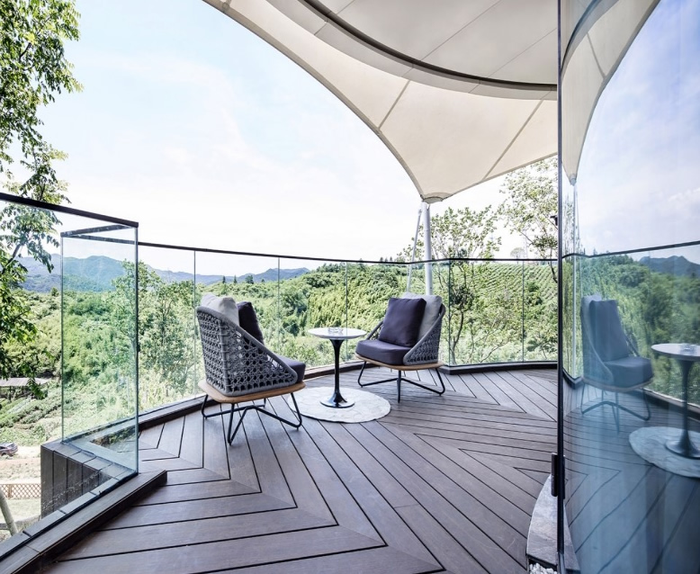 帳篷,是旅者的客棧;篷客,是自然的歸客。聽,蟲啾、鳥囀、蟬噪、蛙鳴、風吹落葉……對旅行返璞歸真的向往,使得“野奢酒店”逐漸風靡世界,而置于山野的“帳篷酒店”更是其中的代表之一。諸暨?春風十里小鎮(zhèn)帳篷酒店,簡單、干凈地屹立在松林之間,由17座帳篷組成,帳篷與帳篷之間有樹林作為天然阻隔,私密、安靜。在這里,茶園山水、浪漫竹林與異域帳篷相融,讓入住者在山水田園,鳥鳴蟲吟之中感受別樣恬靜,體驗遠離塵埃、擁抱自然的生活方式。